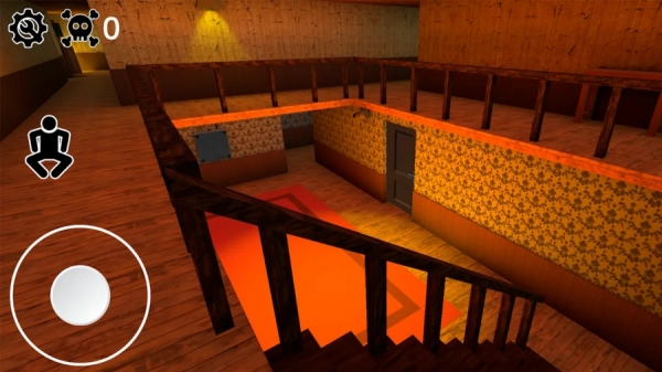 5、进入游戏后,我们会置身于一个房间内,玩家需要躲避爷爷奶奶并逃离这个房间,左手负责控制角色移动,右手则通过滑动屏幕来调整视角;