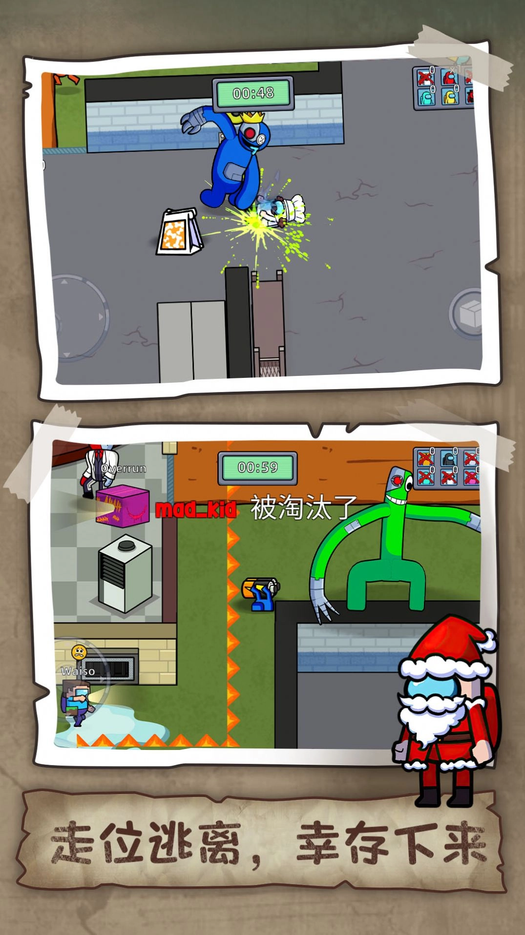 狼人杀潜行大师游戏是一款超有趣的冒险逃生类游戏,在彩虹朋友组织的太空狼人杀派对里,你得完成派对中的各类任务,各种谜题,躲避彩虹怪物朋友的追捕,藏好自己并成功存活下来!
