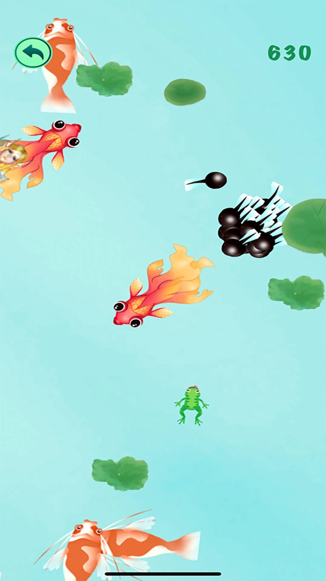 2、只需用手指按住屏幕,即可控制蝌蚪的游动方向。