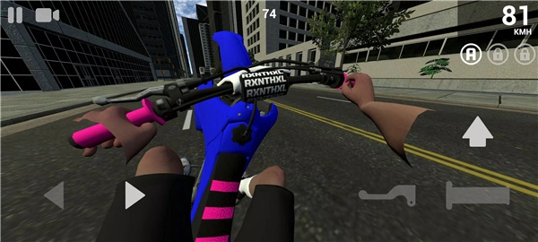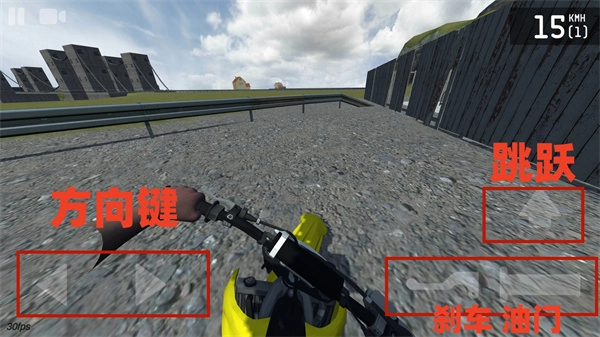 2、游戏的操作也很简单,左侧按钮控制方向,右侧↑按钮可以控制摩托车抬头,而下侧两个按钮则是刹车键与油门键。