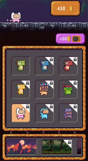 跳跃恐龙大冒险是一款横版像素跳跃闯关游戏,采用像素卡通风格打造。玩家在游戏中能够解锁各类趣味角色,通过跳跃闯关的方式展现自己的冒险技巧与反应能力,拥有丰富的体验感,十分好玩。