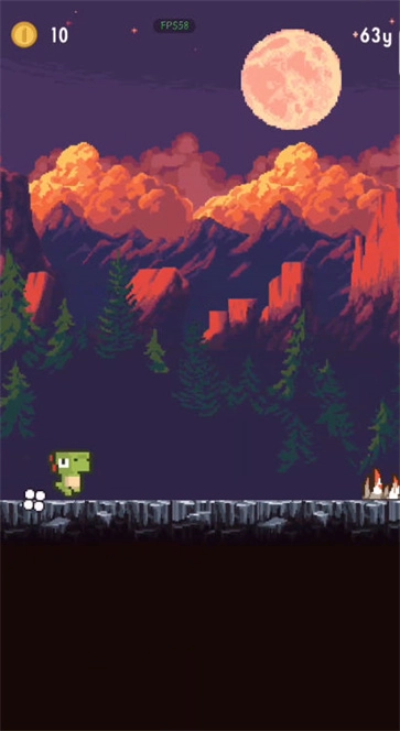 3、只有一个键来进行跳跃,跨过障碍拾取金币奖励,跳跃、奔跑翻滚。