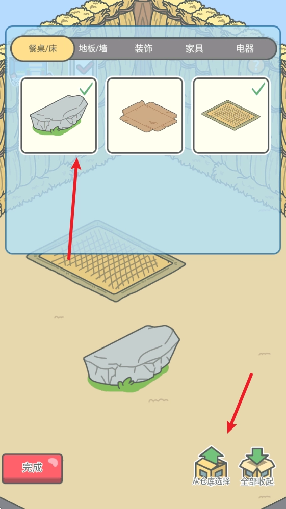 2、接着我们可以点击右下角的按钮,打开自己的仓库,查看已有家具。