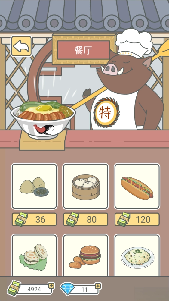 3、点击广场,这里有很多店铺可供逛览,比如可以去餐厅为宠物购买食物。