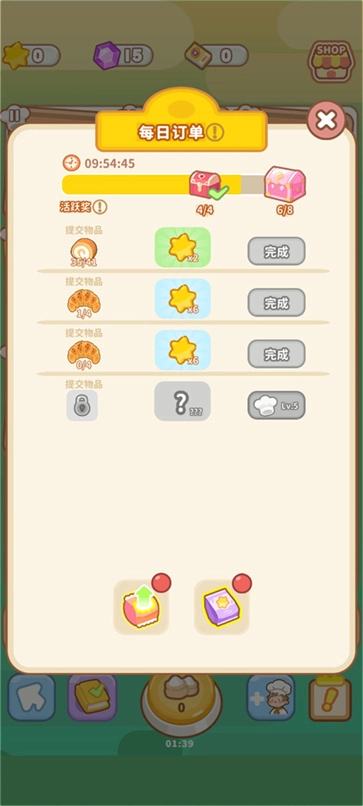 6、游戏中还有订单,长按订单会将相应的食物收集进去。