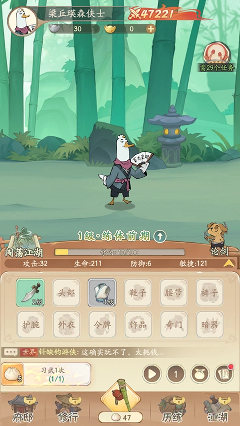3、在游戏里,玩家还能借助提升习武等级,来增强后续获取装备的品质。