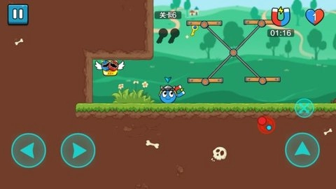 1、操作方便,控制流畅的操作方式通过虚拟按键移动红蓝球,躲避障碍物。