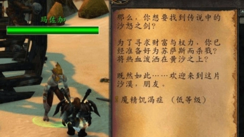 2、在这座瞭望塔的下方,有一位名叫“玛左加”的巨魔,他会交给你一个名为“魔精饥渴症”的任务。接下任务后,你需要去击杀沙怒巨魔,收集6块[一团粘稠的魔精]。