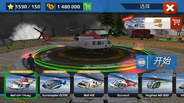 5、在开启任务前,你能够挑选专属的直升机,这里有数十款风格各异的直升机供玩家挑选,选好之后,点击“GO 开始”就能启动任务啦!
