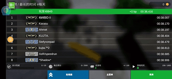 2、当你熟练掌握之后,就可以尝试挑战记录了,另外还有自定义的地图编辑器功能。