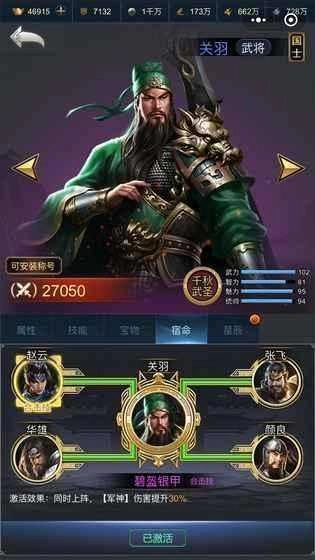 2、华丽多样的时装体系,丰富的皮肤、装备与羽翼自由搭配,助你打造专属的武将形象;