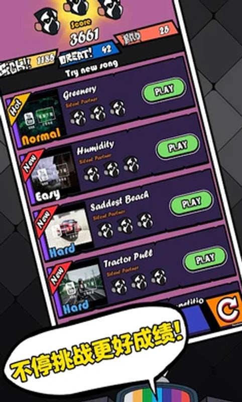 2、可以在练习模式里锻炼手速,同时熟悉各类音符的点击技巧,如此一来,在进行挑战时就不会手忙脚乱了。