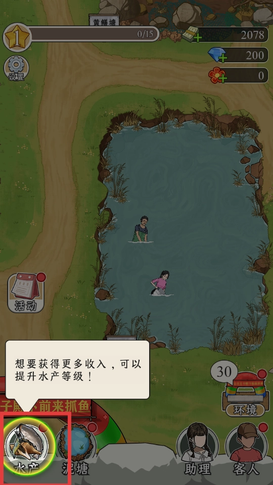 3、接着根据提示进入“环境”界面,以此进一步增加收入。