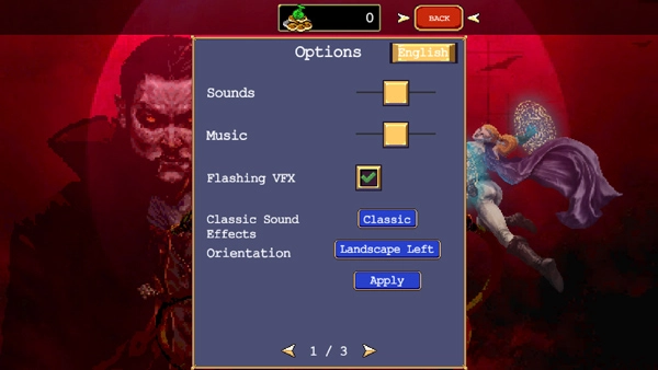1、启动吸血鬼幸存者手机版应用,点击界面右上角的option按钮;