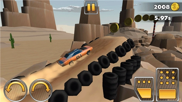 成功进入游戏后,我们可以通过点击左侧的两个按钮来调整方向,以此维持汽车的平衡;右侧的按钮则分别负责控制油门和刹车。在游戏过程中,一定要注意控制好汽车的速度与平衡,不然汽车就会爆炸,导致游戏结束。