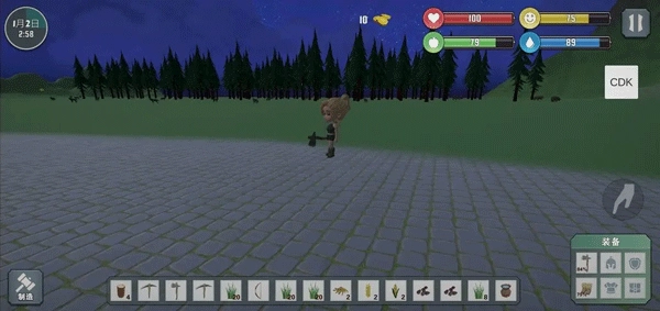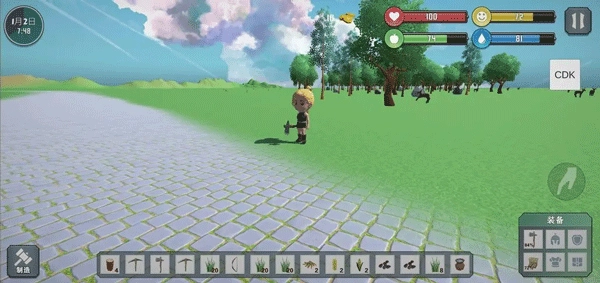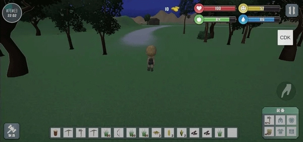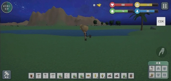 10、制作一把锄头,点击地面就能种下买来的种子;再做个围栏,把小鸡放进去后记得关好门。到这一步,基本的生活保障就差不多有了,对了,别忘了做箱子和床。饿了可以去猎杀小鹿吃生肉,渴了就去水井喝水,心情低落时就睡一觉。