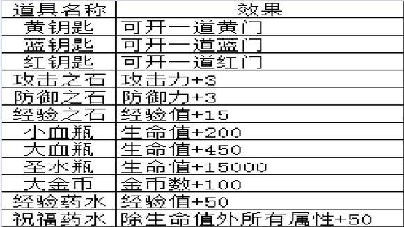 所在楼层/生命值+/攻击力+/防御力+/金币数-/经验值-