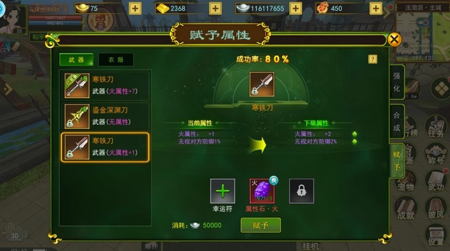 幸运符——增加赋予成功率,赋予等级越高则成功率越低(合成失败会清空赋予属性等级,其他无损失)