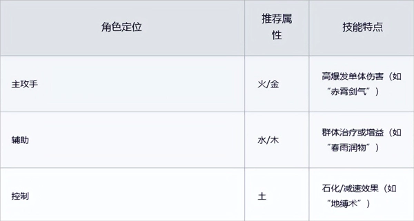 战斗采用五行元素相克机制(金克木、木克土、土克水、水克火、火克金),队伍需要搭配不同属性的角色。在战斗过程中,能够通过连携技来触发额外效果,比如火属性角色进行攻击之后,水属性角色释放技能就可以触发“蒸汽灼烧”这一持续伤害效果。