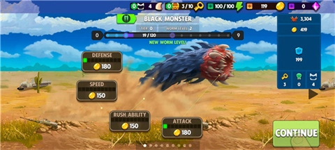 2、给你的蠕虫进行升级强化!解锁其他更强大、更刺激的蠕虫种类!借助新的蠕虫升级让自己变得更强,从而走得更远!