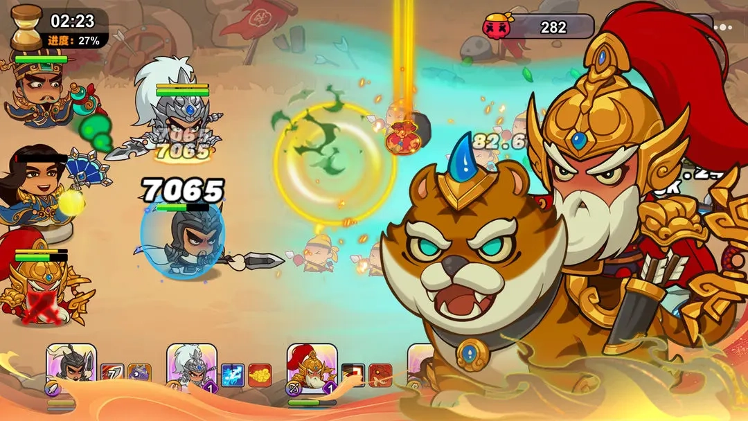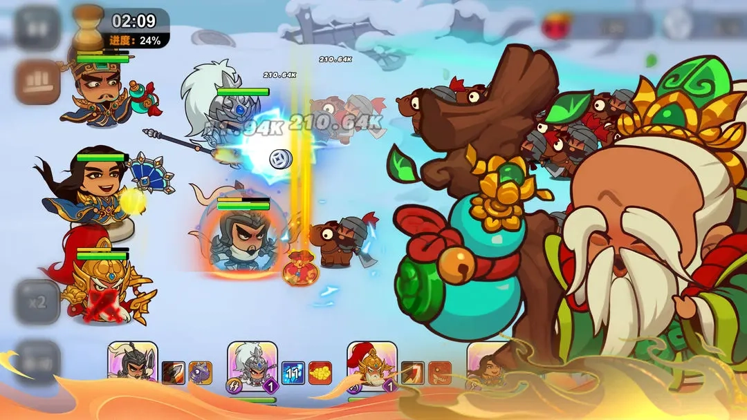 《英雄与宝藏》是一款轻松有趣的策略塔防游戏,融合了roguelike玩法,角色设计上带有鲜明的三国人物印记。游戏中玩家需派遣5名角色出战,持续抵御一波波敌人的进攻。游戏内角色种类丰富,每个角色都有独特的技能,玩家需要通过合理搭配阵容,才能攻克更多关卡。此外,游戏还设有多种副本,帮助玩家快速获取所需资源。