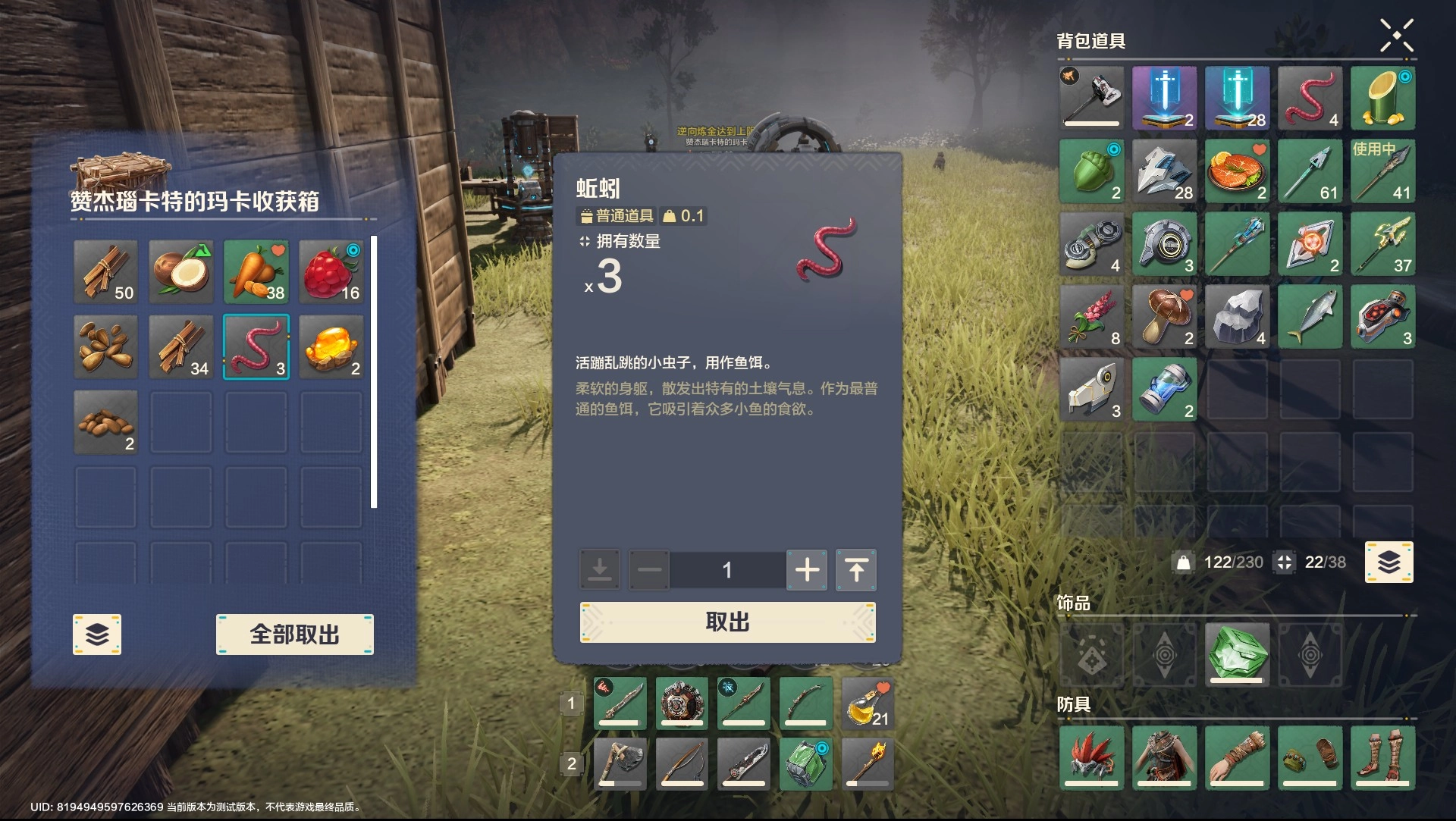解锁了鱼竿后就可以带上饵料去钓鱼了,饵料蚯蚓可通过家园种植后的收获概率获得。鱼经过灶台的处理就可以加工成香煎鱼这道可食用的食材。