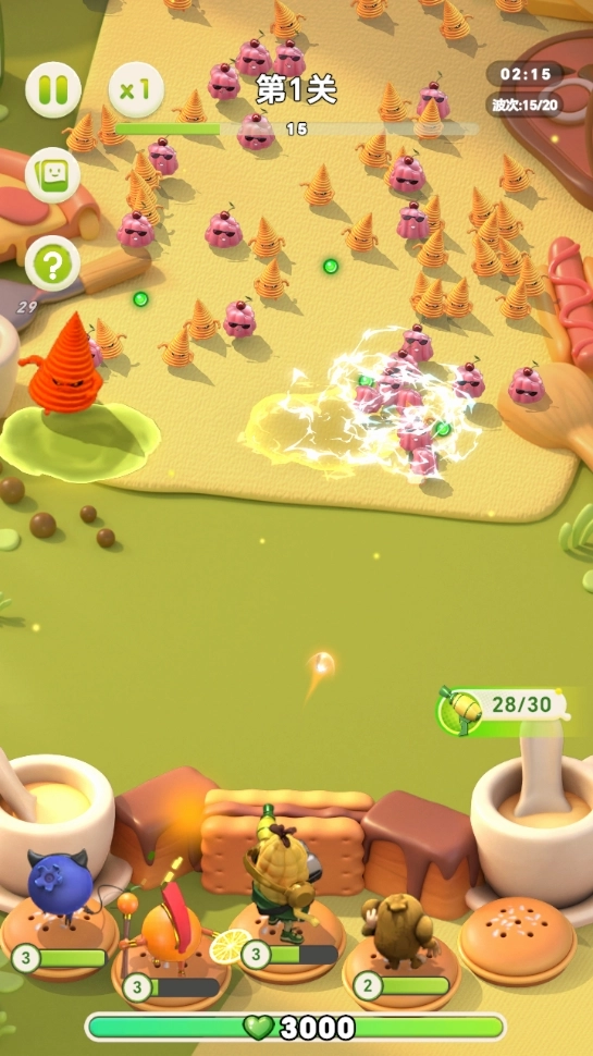 1、多样组合 丰富的英雄与技能搭配,十分考验玩家的策略运用能力。通过持续收集金币,提升水果英雄的等级,解锁更具威力的组合。