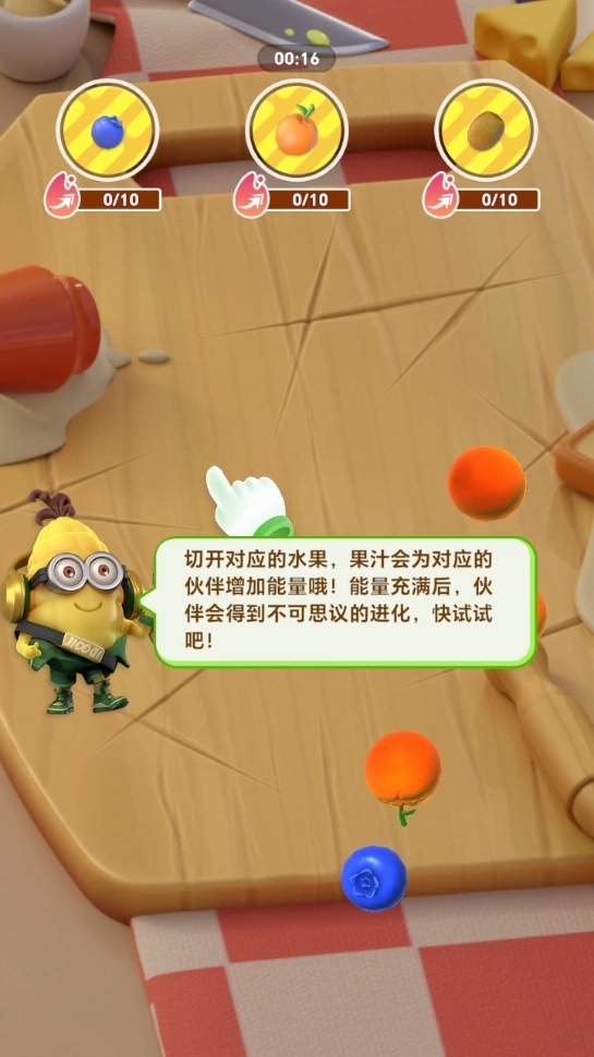 切开对应的水果,果汁会为对应的伙伴补充能量。当能量积满时,伙伴就能实现更强的进化。