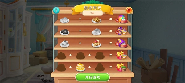 在游戏关卡里,左边小猫咪的气泡中会出现餐盘,你需要收集和当前关卡餐盘颜色一致的图块,等顺利通关后就能得到一块甜点,把甜点都集齐了,就能获取道具奖励哦!