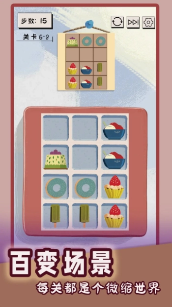 1、每一关里,我们要通过移动下方的物品来闯关,让物品和上方对应的位置匹配就能完成关卡