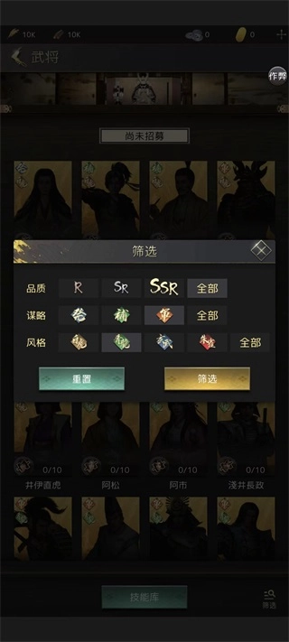 武将品质分为R、SR、SSR三个等级,不同品质的武将所对应的谋略也各有差异。在风格设计上,游戏融入了传统文化里的青龙、白虎、朱雀、玄武四大元素,助力玩家在游玩过程中更好地熟悉中国传统文化。