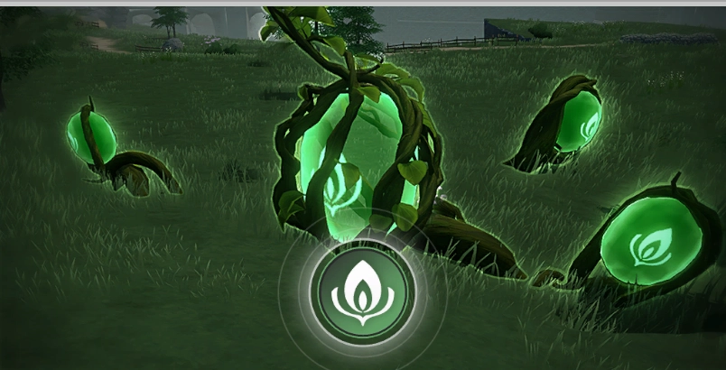 第一个解密步骤是,要用到草系角色,去攻击小绿球,等把周边所有的小绿球都清理干净,这个解密就能完成了。