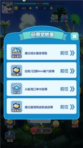 4、如果玩家宠物蛋都抽完了的话,去boss巢穴、航海、道馆挑战等玩法中获取;