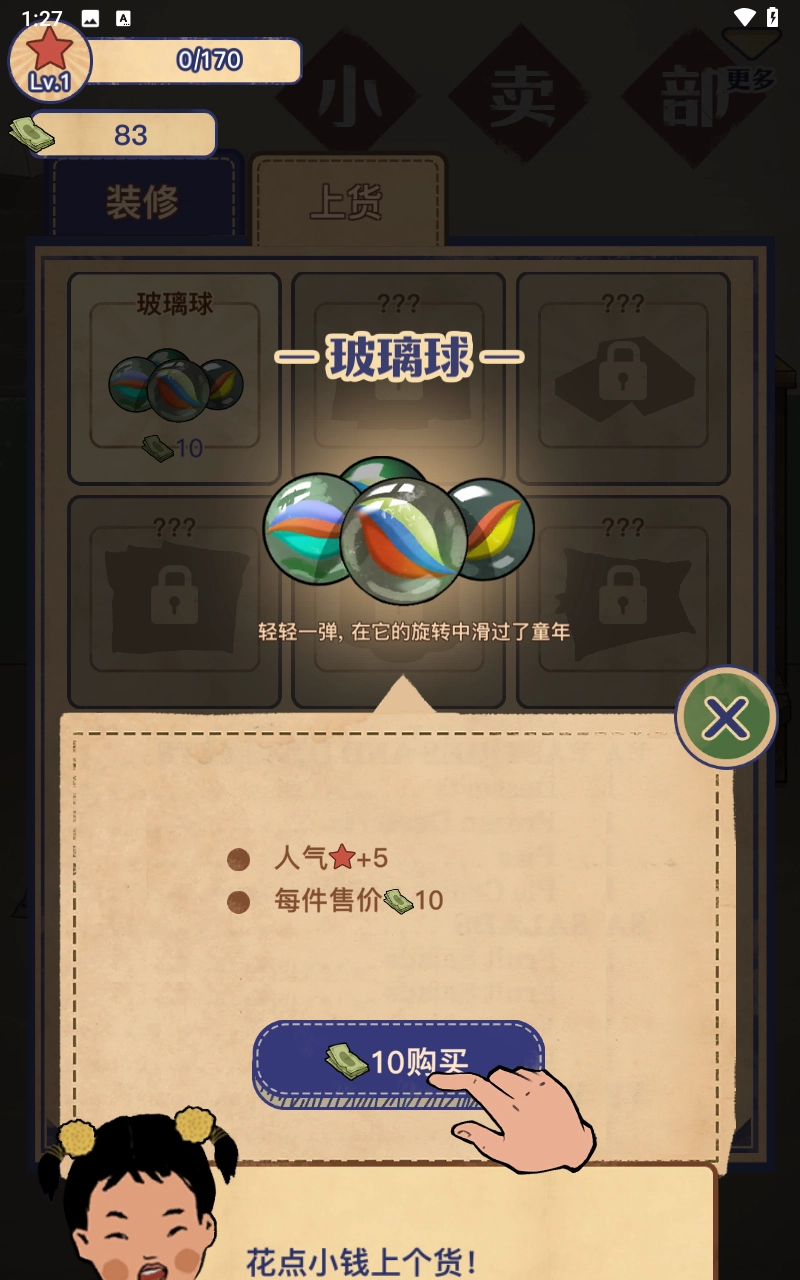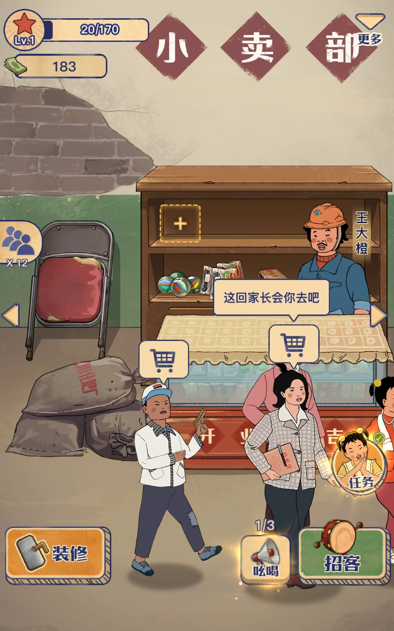 5、顾客来到小卖部后,点击对应的人物进行接待就能完成售卖操作;