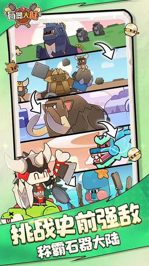 《石器大陆》是一款放置类冒险游戏。在游戏里,玩家将穿越回石器大陆时代,化身为原始人。踏入石器时代后,首先要做的就是打磨石器、精进狩猎技巧,与此同时,喂养神奇的鳄鱼还能帮助玩家获取游戏资源和珍稀道具,助力自身战斗力的持续提升。玩家可以凭借手中的武器抵御野兽侵袭、获取生存所需的食物;也能驯服捕获各种萌宠,让它们成为自己冒险路上的得力助手,一同挑战各类游戏关卡,赢取丰厚的游戏资源。