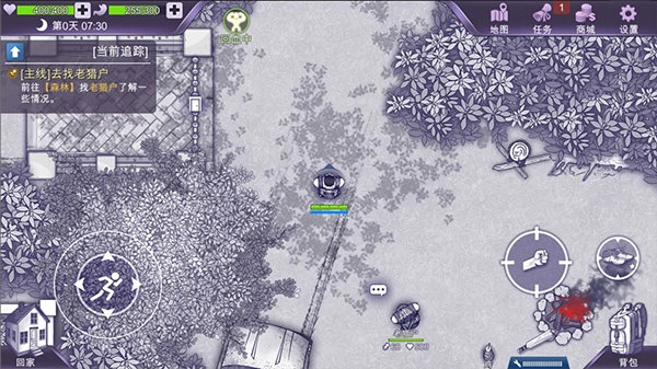 出门前记得捡上【木棒】,这个时候先不要管后院的鸡和木头,直接出门去森林找老猎户。