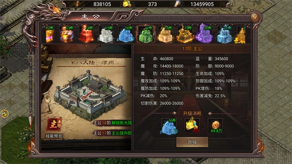 5、提升主公等级可解锁更高大陆及属性