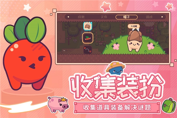 大头大头我有大头!在蔬菜城要想成为最与众不同的菜,就得有个能撑起各种时尚帽子的亮脑门(?),收集那些奇奇怪怪又可爱的帽子来打扮自己。当然啦,还得有特立独行的个性——要勇往直前、直率真诚,心里还得藏着点爱捣蛋的小念头!