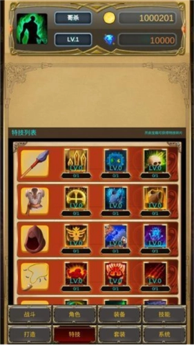 6.【宝箱】会产出【套装碎片】与【特技碎片】。在游戏前期,大家可以开启一些特技宝箱。因为装备每提升一级,就能解锁一个强力的特技。
