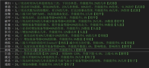 【核心属性】为装备的核心属性,是无负面效果的增益属性。【额外属性】主要用于提升三维属性,存在出现负面属性的可能性。【强化效果】针对装备栏生效,与装备本身不绑定,只要装备在身上就能获得强化加成。【符文】属于辅助类特性。【特技】是战斗类特性技能,需集齐不同特技碎片来达成杀伤效果。【套装】是对技能的补充机制,例如追求每次攻击都暴击,可收集必杀套装;若想实现次次连击,则收集连击套装。