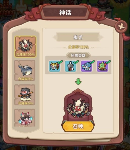 要多多召唤英雄,获得足够的英雄才有机会召唤神话英雄哦~