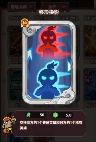 移形换影:交换我方的1个普通英雄和对方的1个稀有英雄。