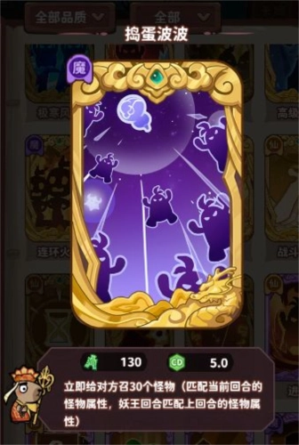 通常来说,具备自我增益效果的卡牌属于“仙”属性,而用于干扰敌方的卡牌则归为“魔”属性。普通卡牌总共有22种,每次能够携带2到3张,具体的携带数量会标注在卡牌的右上角位置。