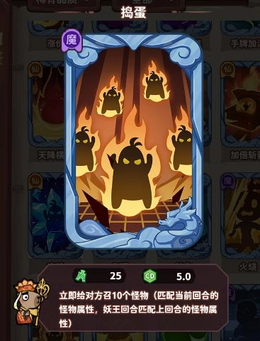 立即给对方召10个怪物(匹配当前回合的怪物属性,妖王回合匹配上回合的怪物属性)。