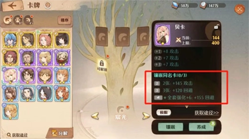 ‒ 卡组成套后,进行整套强化,蓝卡+4、紫卡+6即可(金卡难凑一套,凑到的话强化+8)