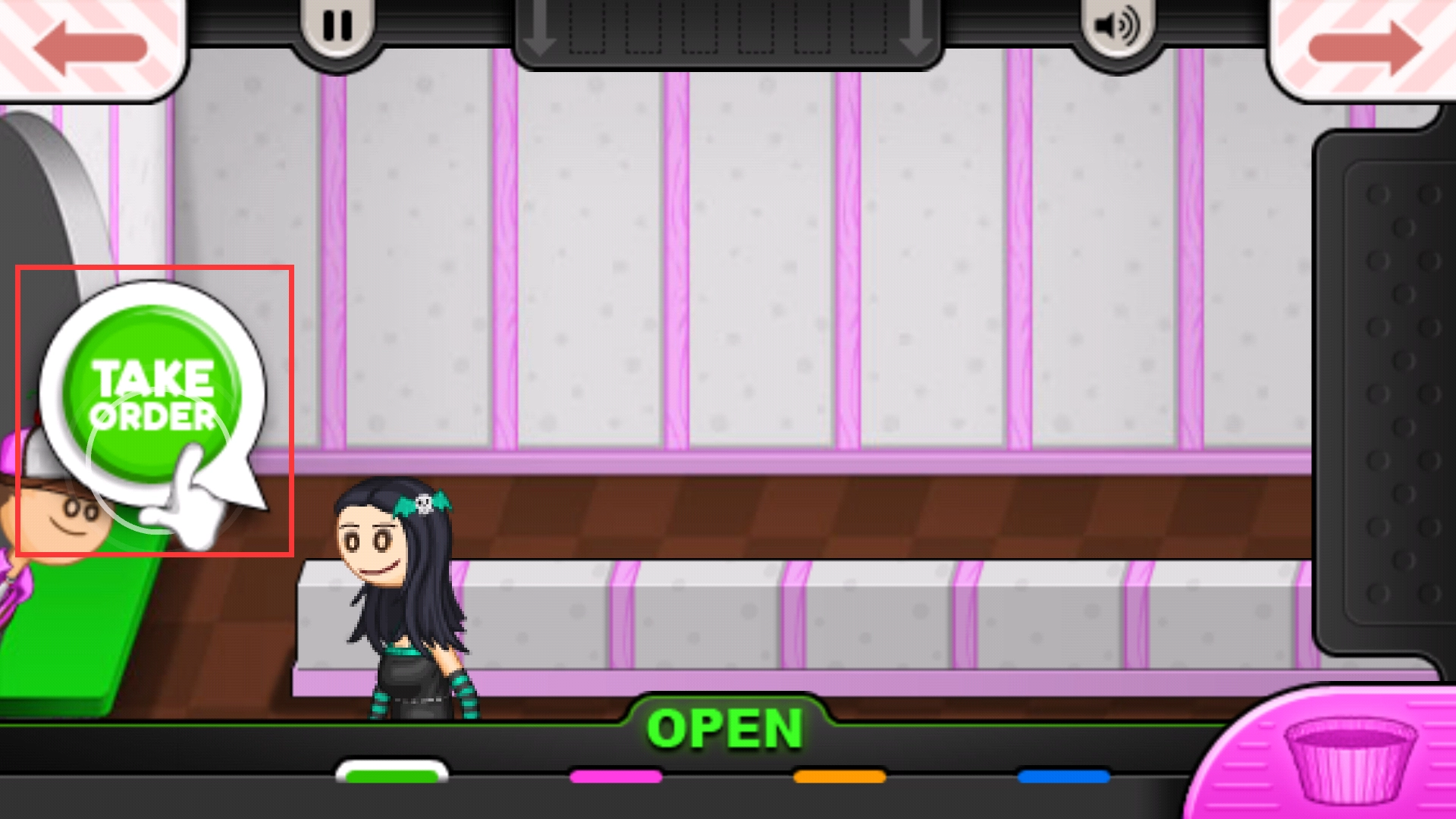 5、教程完成后,此时有一位顾客前来,我们点击“TAKE ORDER”按钮来接受她的点餐需求
