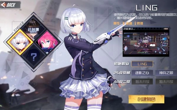 目前可供玩家选择的有两个角色、神月和Ling。