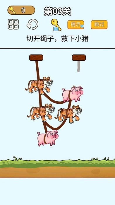 小手别动最新版是一款趣味十足的手机休闲益智小游戏,主打模拟闯关玩法。游戏里,玩家得开动脑筋解救小猪,玩法轻松有趣,设有多种关卡供挑战,需要合理切断绳子来完成救援。