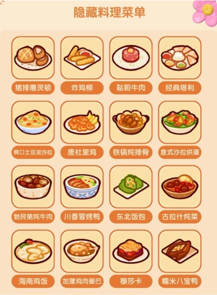 隐藏料理菜单