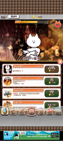 5、攻击的同时也会获取金币,金币可以用来升级或者学习技能,点击右下角的玩家,升级攻击力和学习技能;